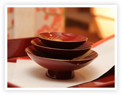 新郎新婦が盃を重ねることで、固い縁を結ぶ意味があります。